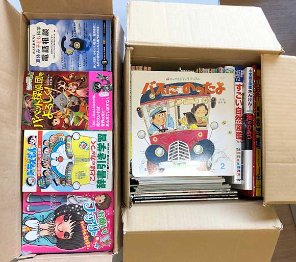 段ボール2箱のたくさんの絵本を寄付していただきました!